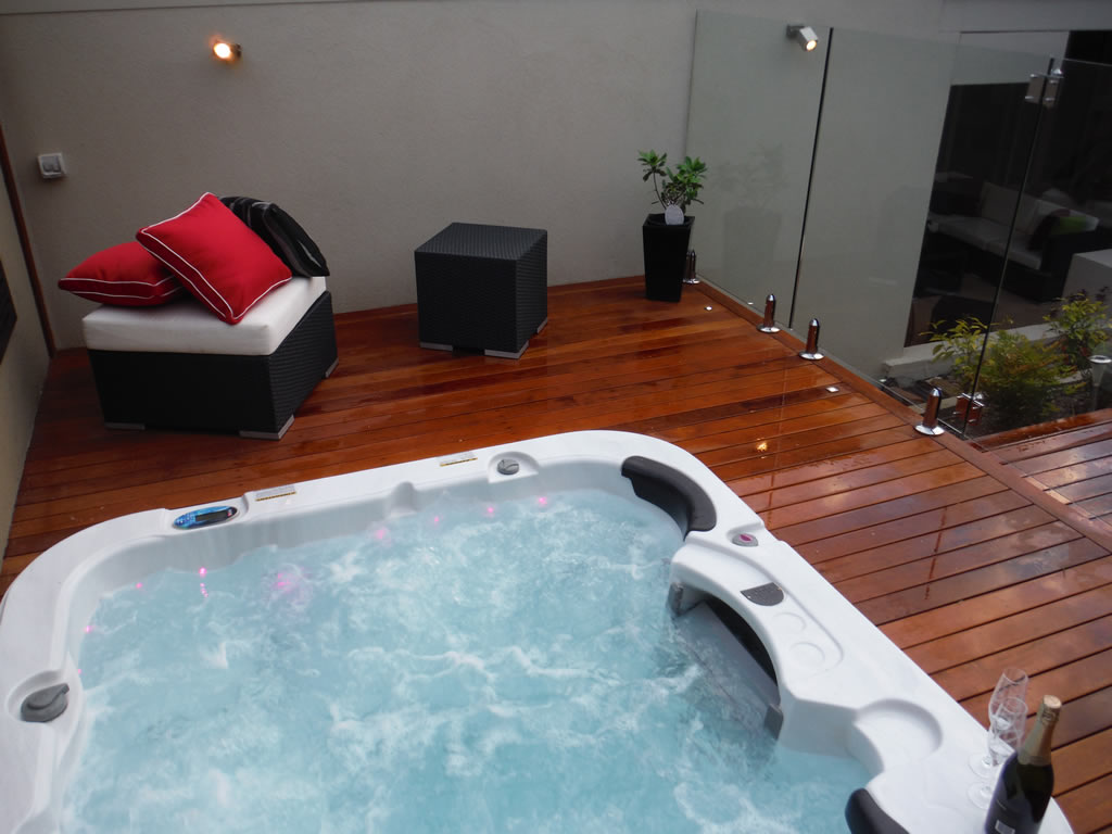 Once the relaxation spa was dropped into place a frameless glass fence and gate was installed. The frameless fence is constructed of 12mm clear toughened glass clamped by 316 stainless steel spigots.